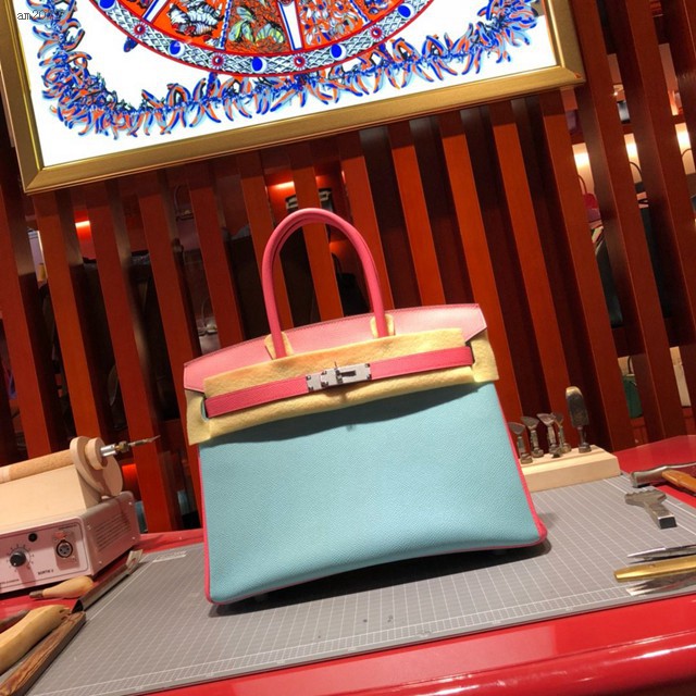 Hermes女包 愛馬仕經典款Birkin包 epsom皮手掌紋 Hermes鉑金拼色女士手提包  am2072