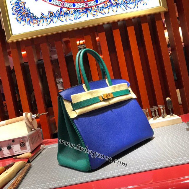Hermes女包 愛馬仕經典款Birkin包 epsom皮手掌紋 Hermes鉑金拼色女士手提包  am2074