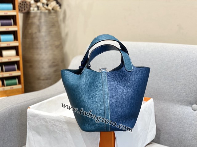 Hermes女包 愛馬仕經典款Picotin lock菜籃子包 博斯普魯斯綠拼深邃藍 銀扣 手縫臘線  am2094