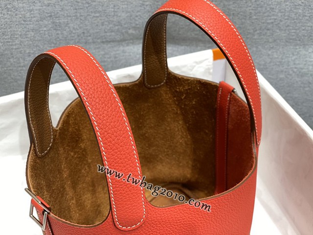 Hermes女包 愛馬仕Picotin lock菜籃子包 心紅拼金棕 手縫臘線 Hermes手提女包 am2096
