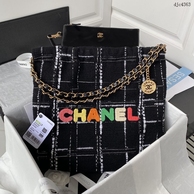 Chanel專櫃新款鏈條肩背包 香奈兒2022S春夏火爆22 bag毛呢購物袋 AS3260 djc4363