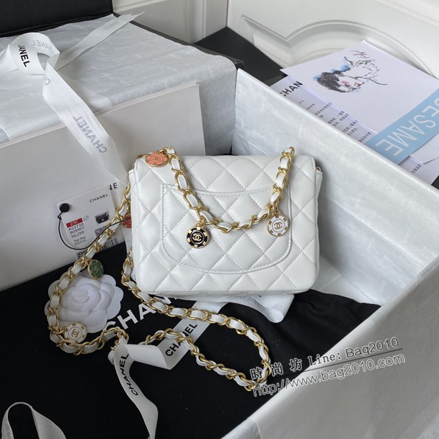 Chanel專櫃23C秋冬新品賭場系列方胖子口蓋包 AS3738 香奈兒羊皮琺瑯金幣墜鏈條時尚休包 djc4378