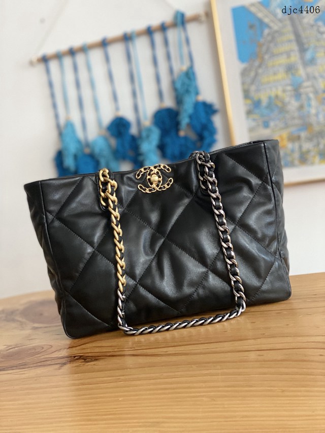 Chanel專櫃新款22k秋冬高級成衣系列bag19橫款購物包 AS3660克色 香奈兒原廠方框山羊皮Tote肩背女包 djc4406