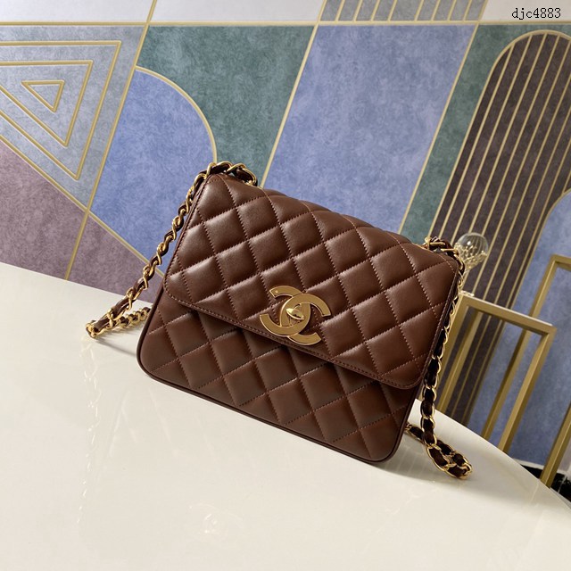 貝嫂同款 現貨 ChaneVintage絕版大金扣CFChanel Classic Flap Bag是1983年老佛爺接手Chanel後對香奈兒女士的設計稍作改動後重新推出的作品,也是老佛爺本人最得意的開山之作 其中很受明星們和博主們歡迎的就是這款大號CF了它的亮點在於這個鍍金的大雙C logo,現在專櫃版的CF已經沒有這樣的設計了,都是小雙c。採用口蓋設計 容量非常大 可單肩 斜挎 也可以把手鏈收短變手提包 尺寸25 20 9cm,編號A87中號豎款棕羊
