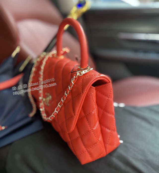 Chanel專櫃cocohandle經典款手提肩背女包 型號92990 香奈兒橘紅配橘紅球手原單高品質版本口蓋手提包 djc4978