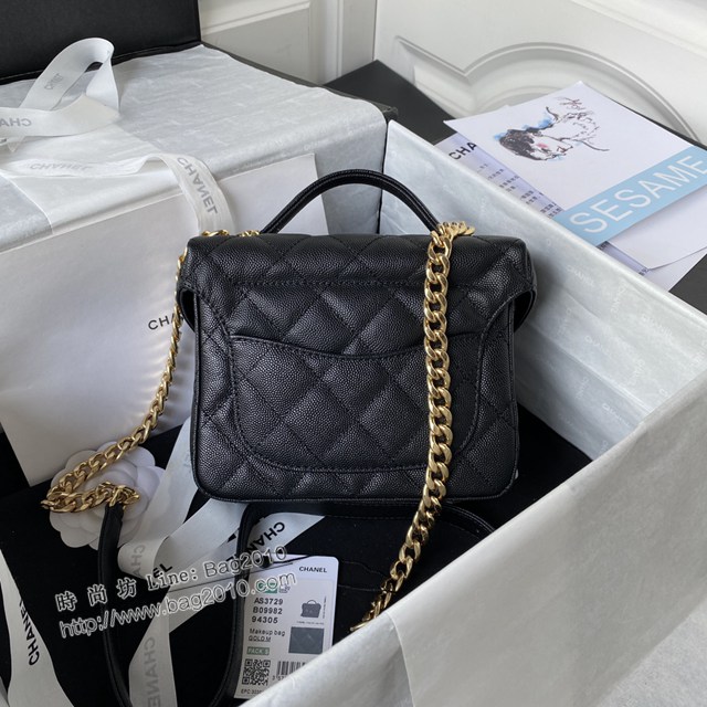 Chanel專櫃23C早春度假新款vintage復古牛奶盒子 AS3729 香奈兒haas荔枝牛皮手提單肩斜挎女包 djc4986