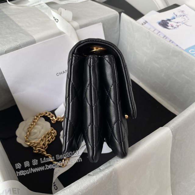 Chanel專櫃22K秋冬新款AS3393金珠黑色鏈條包 香奈兒小羊皮肩背斜挎女包 djc5109
