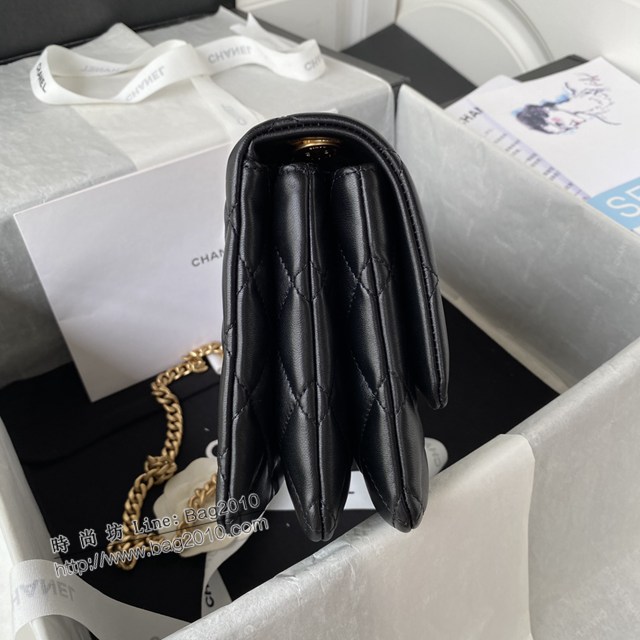 Chanel專櫃22K秋冬新款AS3609金珠黑色鏈條包 香奈兒小羊皮肩背斜挎女包 djc5110