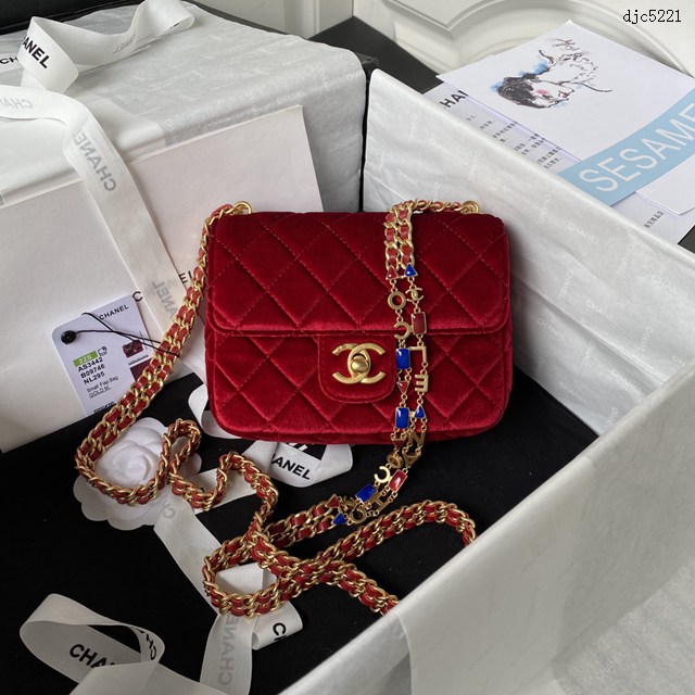 Chanel專櫃新款絲絨種草系列琺瑯配復古鏈條方胖子AS3442 香奈兒高端女包 djc5221