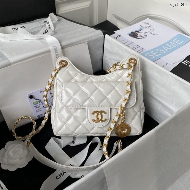 Chanel專櫃小號23C新款AS3710油蠟皮hobo坐穩單肩包 香奈兒小金幣掛墜單肩斜挎腋下女包 djc5246