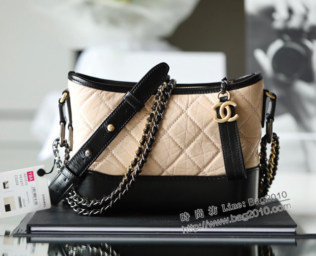 Chanel專櫃新款黑杏菱格紋Gabrielle鏈條肩背女包 香奈兒小號原廠皮流浪包 djc5281