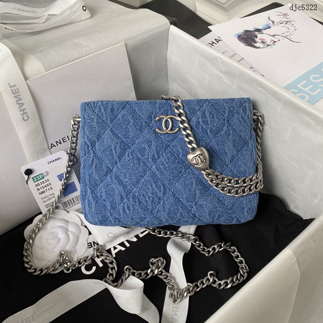 Chanel專櫃新款23p愛心hobo包 AS3830 香奈兒時尚單肩斜挎腋下牛仔布鏈條肩背包 djc5322