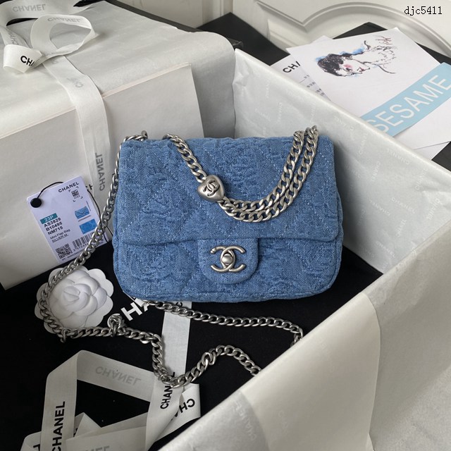 Chanel專櫃23P新款AS3829山茶花牛仔布鏈條包 香奈兒愛心球女士單肩斜挎包 djc5411