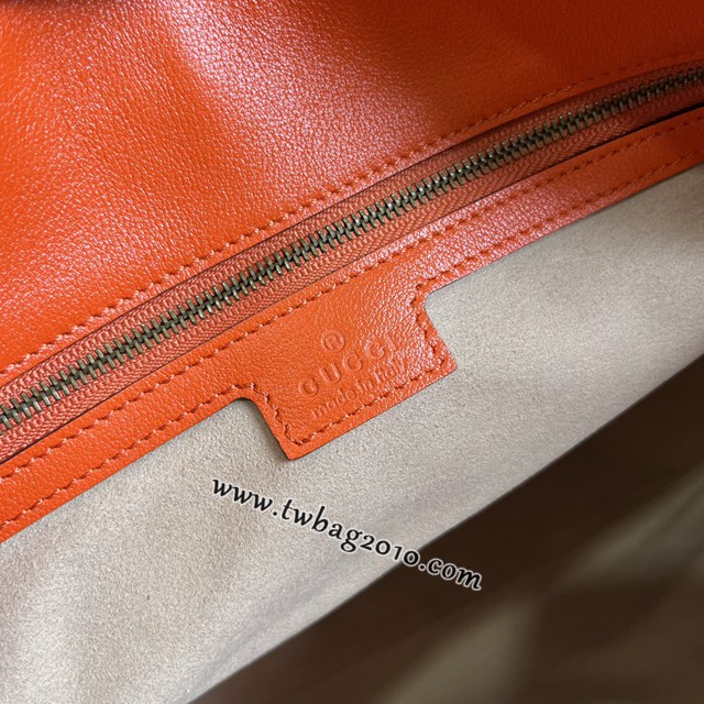 Gucci Diana系列大號肩背包。這款中號肩背包巧妙糅合品牌頗具辨識度的兩大元素——竹節提手和雙G配件,賦予整個造型以獨特魅力。這款配飾以橙色皮革匠心打造,配以撞色皮革肩帶,令整個設計更加亮眼。橙色皮革滾邊,金色調配件,超細纖維絨面質感襯裏雙G,另配有皮革肩帶內部:1個拉鏈口袋,竹節提手(25釐米高)可調節可拆卸皮革肩帶(60釐米高)磁扣。型號:746245。尺寸:34(寬)x 26(高)x 9cm(深)顏色:橙色/原廠皮。