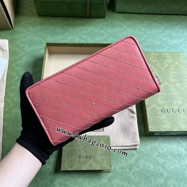 Gucci Blondie系列全拉鏈錢包。Gucci Blondie系列以品牌頗為大膽的一款圖案搭配同色調皮革設計,處處散發著含蓄內斂的氣息。該系列匠心融蘊圓形幾何風格互扣式雙G,盡展Gucci現代美學設計。在這款粉色皮革全拉鏈錢包上,該標識細節於包身亮眼呈現。粉色皮革,塔夫綢襯裏,圓形互扣式雙G皮革貼飾,內部:十二個卡片隔層、三個鈔票隔層和一個拉鏈零錢袋,拉鏈開合。重量:約0.18千克。型號:760312。尺寸:11(長)x 19.5(寬)x 3cm(厚)顏色:粉色/原廠皮。義大利創作