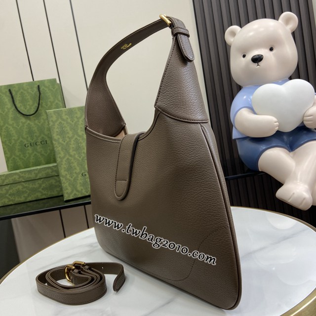 GG《古馳創星說》(Gucci Cosmogonie)系列在意大利歷史悠久的蒙特城堡亮相。秀場上,不同時代、不同地理位置的美學元素交相輝映,將過去與當下相連結。這一全新的新月造型肩背包是秀場單品之一,它從品牌典藏元素汲取靈感,採用柔軟皮革材質呈現,並飾有在20世紀70年代亮相的雙G標誌。啡色軟皮,閃亮金色調配件,內部:1個拉鏈口袋,這款手袋附贈額外的肩帶,可通過搭扣固定在手袋上,提手可調節肩帶,飾雙G磁吸搭扣。型號:726274。尺寸:39(寬)x 38(高)x 2(深)顏色:啡色/原廠皮。