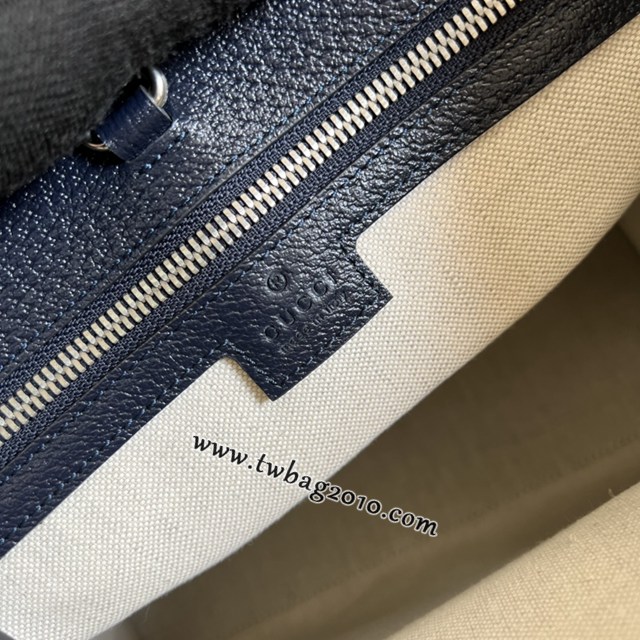 《配原廠綠色禮品袋》GG小號托特包這款結構挺括的大號托特包採用GG Supreme帆布製作,搭配棕色皮革滾邊,提供頂部提手和肩帶雙重攜帶選擇。型號:659983。尺寸:31*26.5*14cm。顏色:藍色/pvc。