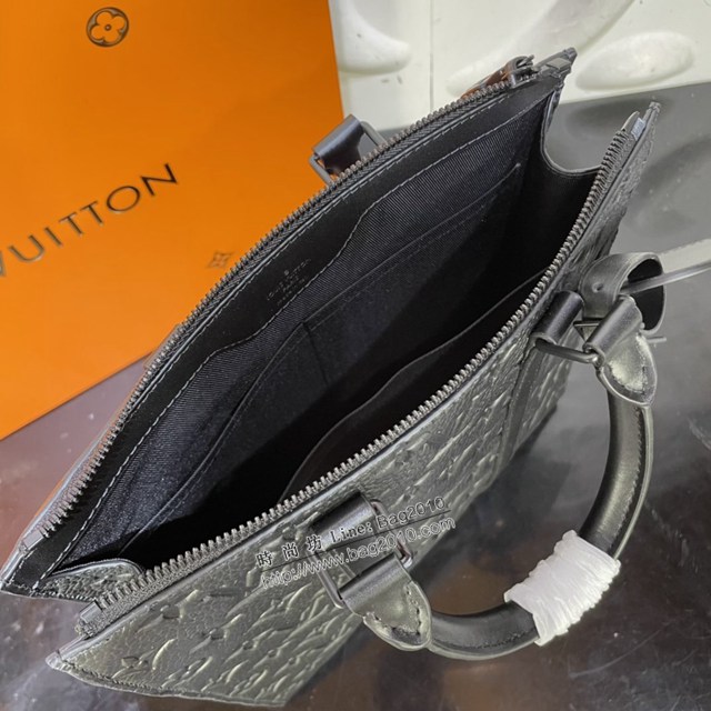 lv路易威登專櫃2022新款Sac Plat Cross手袋 lv頂級原單Taurillon皮革男士手提托特包 M59960 ydh4771