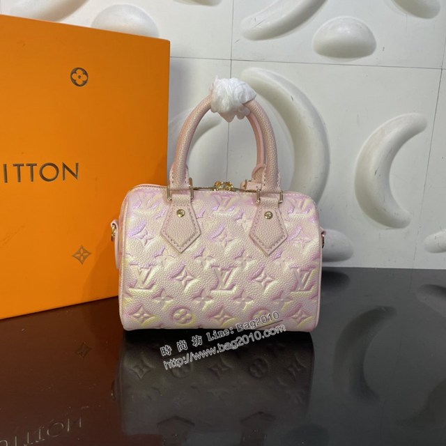 lv路易威登專櫃2022新款Speedy Bandoulière20手袋 輥壓皮革手柄和銘紋掛鎖lv枕頭包 M46268 ydh4896